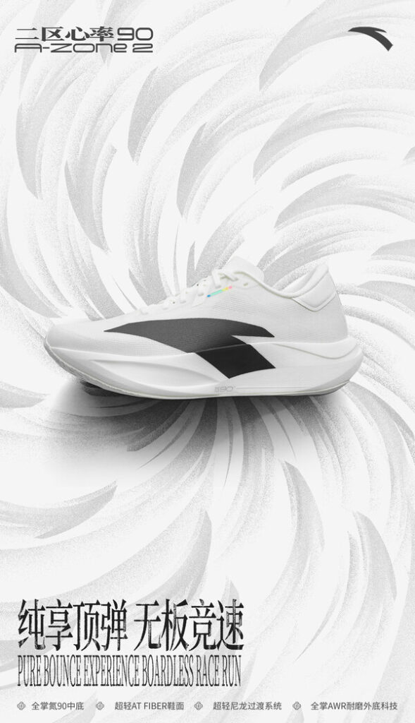 “纯享顶弹、无板竞速”,安踏”二区心率90″的推出正是将竞赛氮科技融入日常,助力长距离抗衰,以轻量快弹的节奏帮助跑者高效训练。