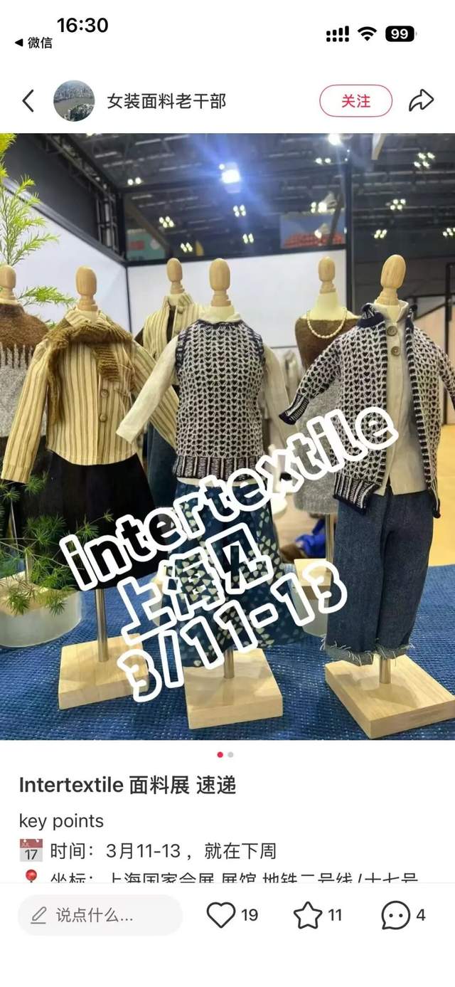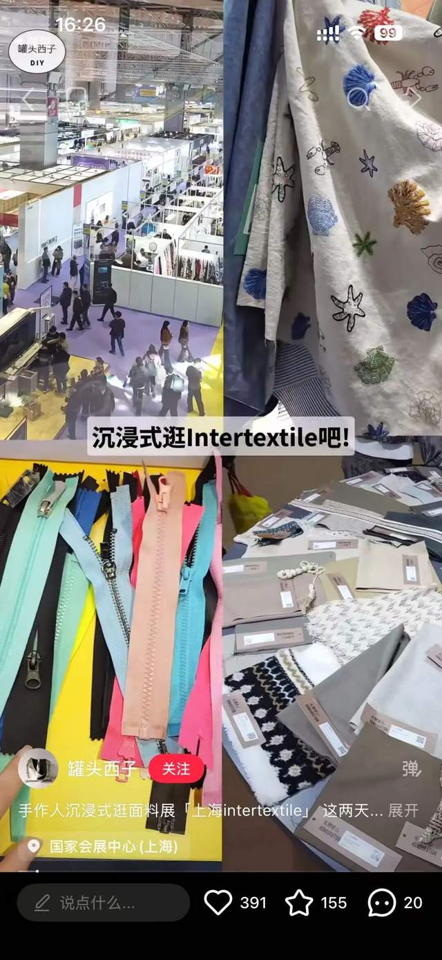 当“宇宙第一大展”的热度通过社交媒体的棱镜折射,便诞生了更具活力的“声量场”。小红书、抖音等平台上,#Intertextile#话题热度持续攀升。不仅设计师、时尚博主、专业买手、厂二代、服二代纷纷“探展”发声,手工玩家、跨界新人、缝纫达人更是竞相当起了“野生代言人”——他们用镜头捕捉最前沿的面料趋势,用图文记录“沉浸式探展”的独家体验,将展会的专业信息转化为大众可感知的时尚故事。正是这群来自不同圈层的互联网玩家,让Intertextile面辅料展的行业声量在线上线下持续发酵、久久回响。