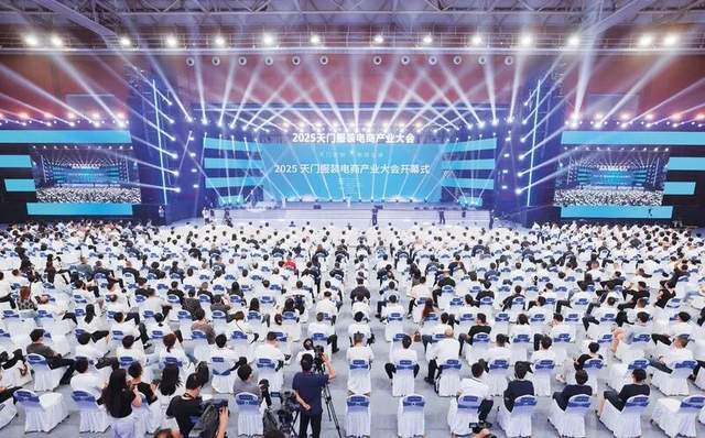 (天门市将纺织服装产业作为主导产业,连续3年举办服装电商产业大会,每年培训服装相关专业人才近3000名,推动形成返乡就业创业蓬勃发展态势。图为2025年6月28日,以“天门衣尚 智绘全球”为主题的2025天门服装电商产业大会在天门市体育馆开幕。 湖北省天门市委宣传部供图)