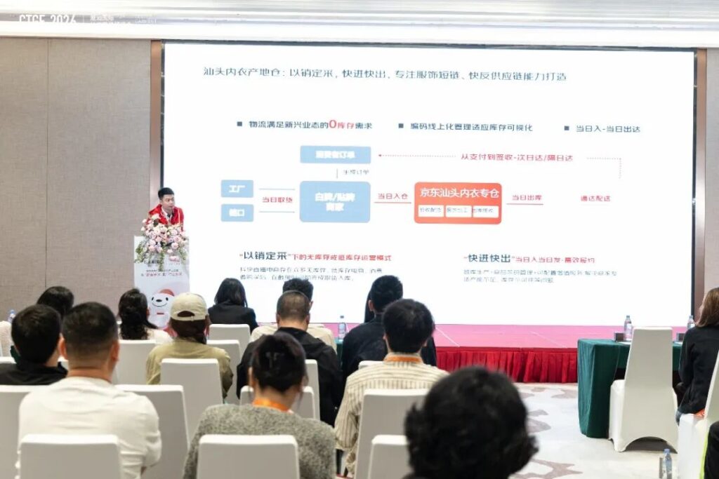 随后,京东物流-广东粤东分公司销售总监王明聪以《织网共潮生:构建潮汕内衣产业带的柔性供应链基础设施》为题,阐述了京东物流如何通过覆盖全国的仓配网络与智能供应链技术,为潮汕内衣产业带打造“快准稳”的柔性基础设施。他提出,在“小单快返”成为行业标配的当下,高效、弹性的供应链能力是商家抢占市场先机的核心保障,京东物流将持续为产业带商家降本增效、提升用户体验保驾护航。