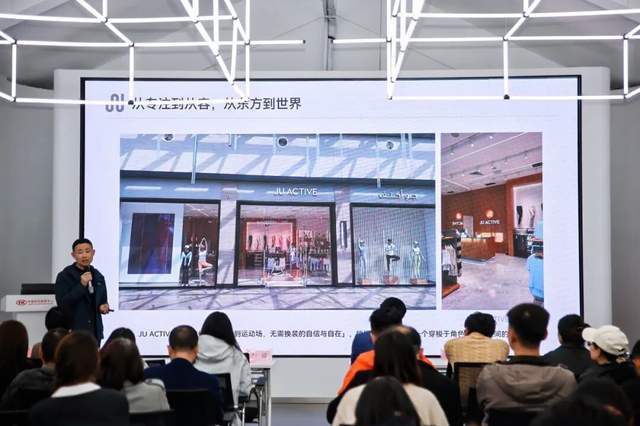 随着生活节奏的加快,消费者场景切换的需求愈加频繁,来自市场一线的“实践者”,带来了接地气的创新经验。“JU ACTIVE 正把这份‘从通勤到运动场,无需换装的自信与自在’,悄悄带给全世界每一个穿梭于角色与场景之间的你。”浙江极由科技有限公司总经理助理叶飞在《时尚轻运动产品创新关注点》中指出,终端消费的新通勤主义要求服饰实现从会议室到运动场的自由切换,不再割裂着装者的日程。他介绍了JU-Lab面料实验室开发的面料融入Atmo-Matrix气层矩阵科技,实现了“第二层皮肤”般的贴合感。