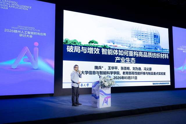 3月31日,以“科技赋能 智织未来”为主题的2026赣州人工智能时尚应用研讨大会在于都FDC时尚产业综合体举行。中国服装协会副会长李昕,赣州市政府副秘书长、发展研究中心主任钟金华,于都县人民政府副县长黎俊出席并致辞。