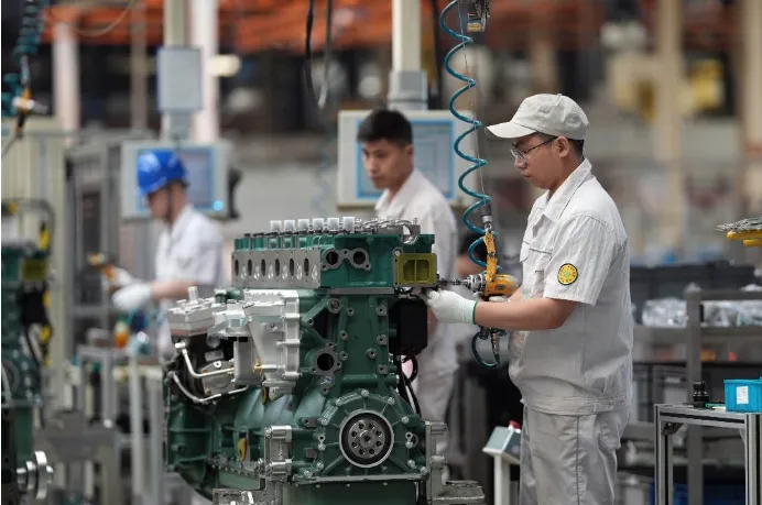 6月3日,一汽解放汽车有限公司无锡柴油机厂的工人在车间里工作。新华社记者 李尕 摄