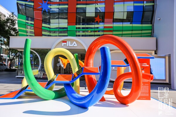 值得一提的是,FILA筑起了中法交流的友谊桥梁,将北京三里屯ICONA旗舰店进行了外立面升级并打造艺术装置,由新锐插画艺术家周日央结合本次FILA蓬皮杜中心合作为灵感进行定制设计,集合多彩、灵动、时尚、运动等要素构成了外立面的主题——不倦的涌动,恰如其分地展现了现代艺术中自由、跳脱与强烈的情绪感染力。该艺术装置设计了具备流动延续感的管道,让现代艺术打破时间空间局限,让消费者停留观察管内的同时,链接蓬皮杜中心,直穿巴黎,透过装置管道内部可以观赏到埃菲尔铁塔、巴黎圣母院等巴黎地标性景观,实现中法的隔空相遇。
