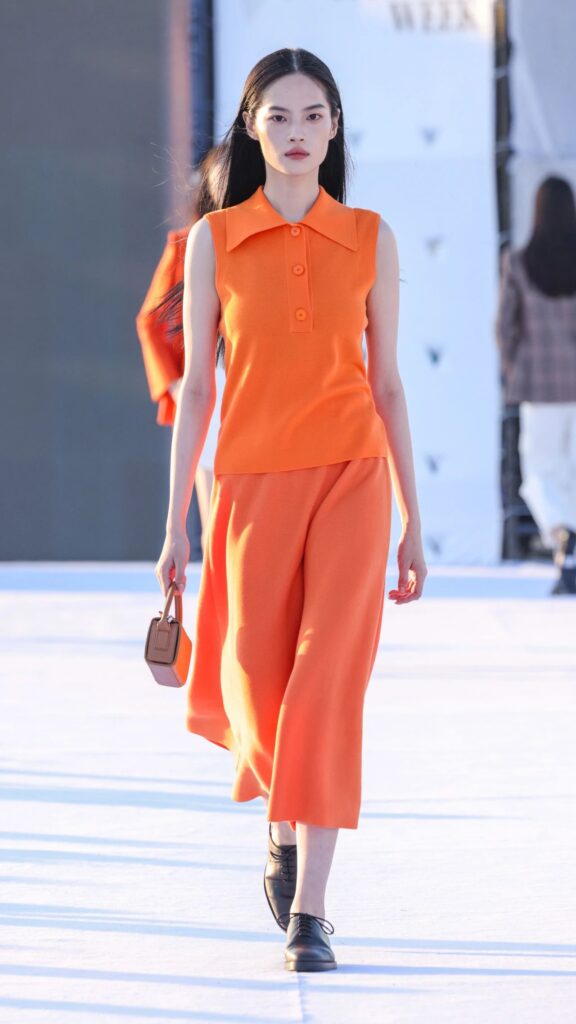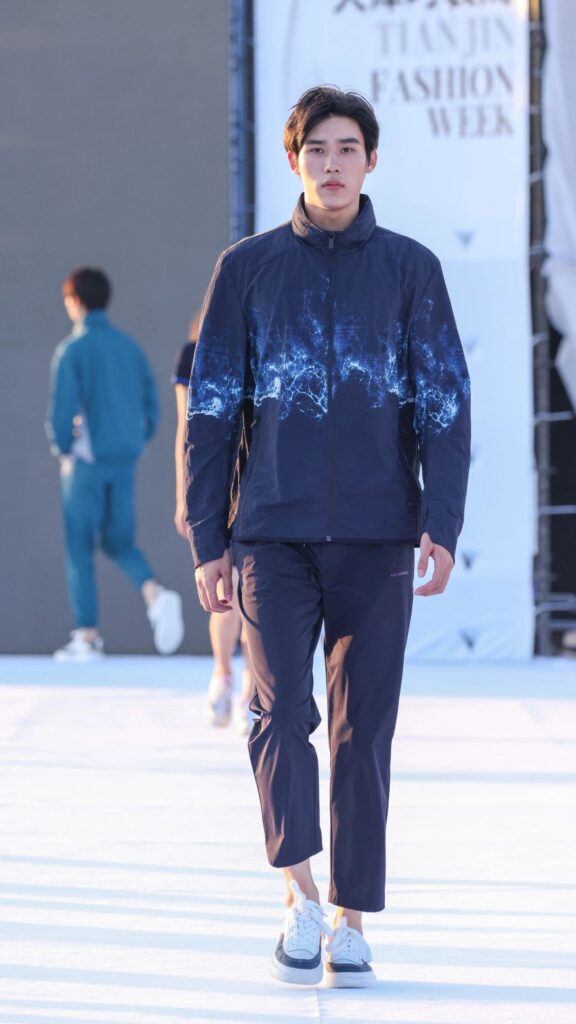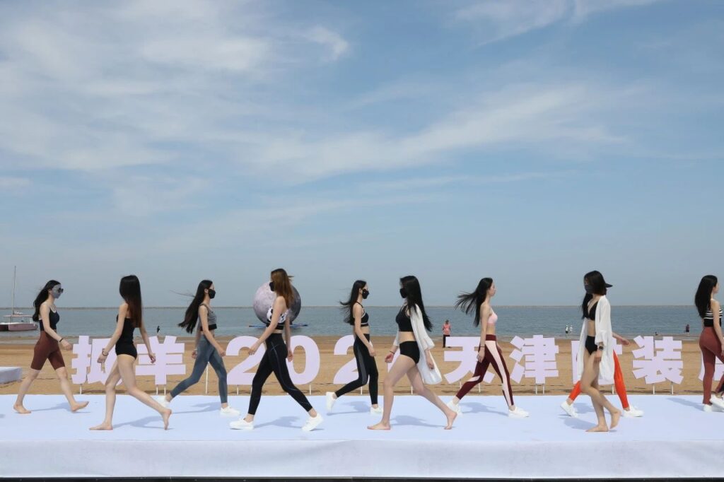 本届时装周以“潮韵·尚新”为主题,开幕大秀以海为背景、蓝天为幕布、沙滩为T台。身着波司登、yoyo、维珍妮、卡利亚里、玛丝菲尔等国内外知名品牌和白玫瑰、抵羊等中华老字号品牌的模特轮番登场。海风与涛声相和,晚霞与余晖互映,观众陶醉在海天一色处模特展示的一件件精美服饰中,享受着别具一格的视觉盛宴。
