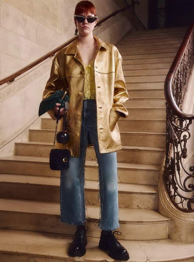 该系列展示了棉质T恤、用可持续循环丹宁制成的牛仔裤,和一系列由塔夫绸连衣裙重构而成的派对礼裙。展现了品牌利用可循环工艺在设计中不断探索新的可能和致敬经典的理念,不断传承焕新,保持生机与活力。此外,Stuart Vevers期望可以通过延续循环时尚再定义手工艺,因此本系列继续使用再生皮革,并推出了由此打造的皮质短夹克。