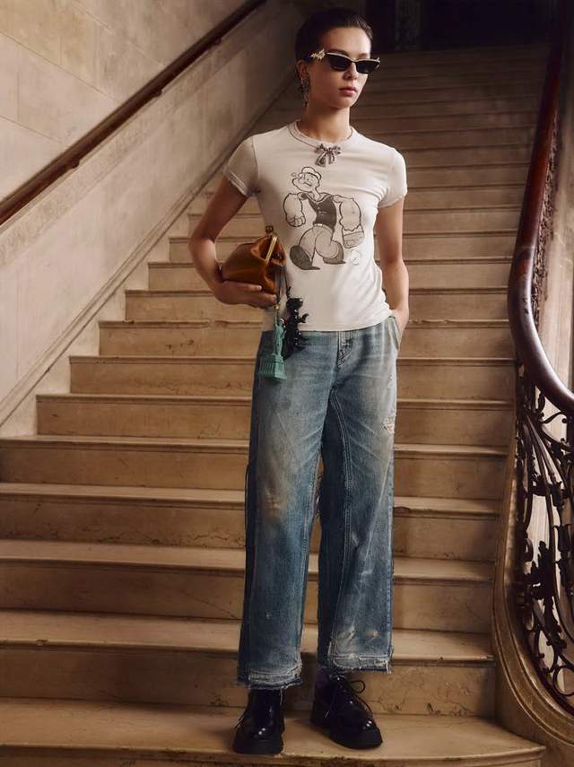 该系列进一步诠释了秋季系列美式经典与年轻、反主流态度的混搭风格,将经典单品与潮流设计相结合,延续个性自我的时尚表达。在具备实穿性的同时,也不失时装色彩。针织单品是本系列的重点,包括绞花、嵌花工艺的菱格纹开衫、毛衣和长裤。还有剪裁合体的燕尾夹克、花呢塔夫绸长裙、格纹长裤、拳击短裤、印有卡通图案的 T 恤和毛衣,漫画中的“大力水手”也背上了经典的Tabby手袋。此外还推出了采用金属色、淡蓝色等极具表现力的皮革外套。