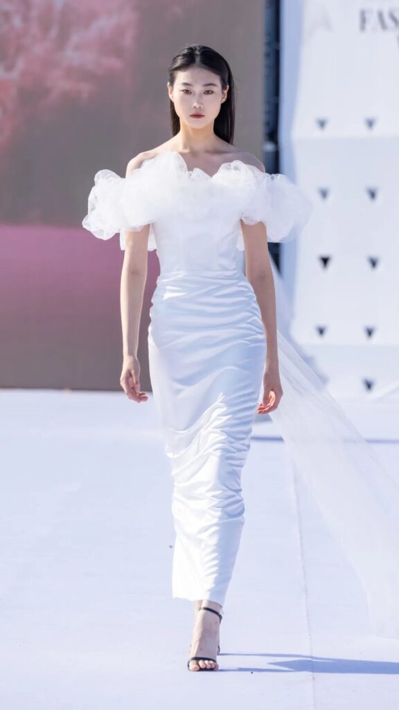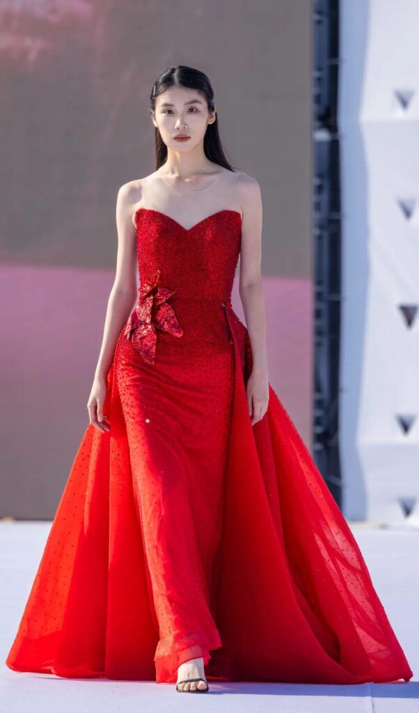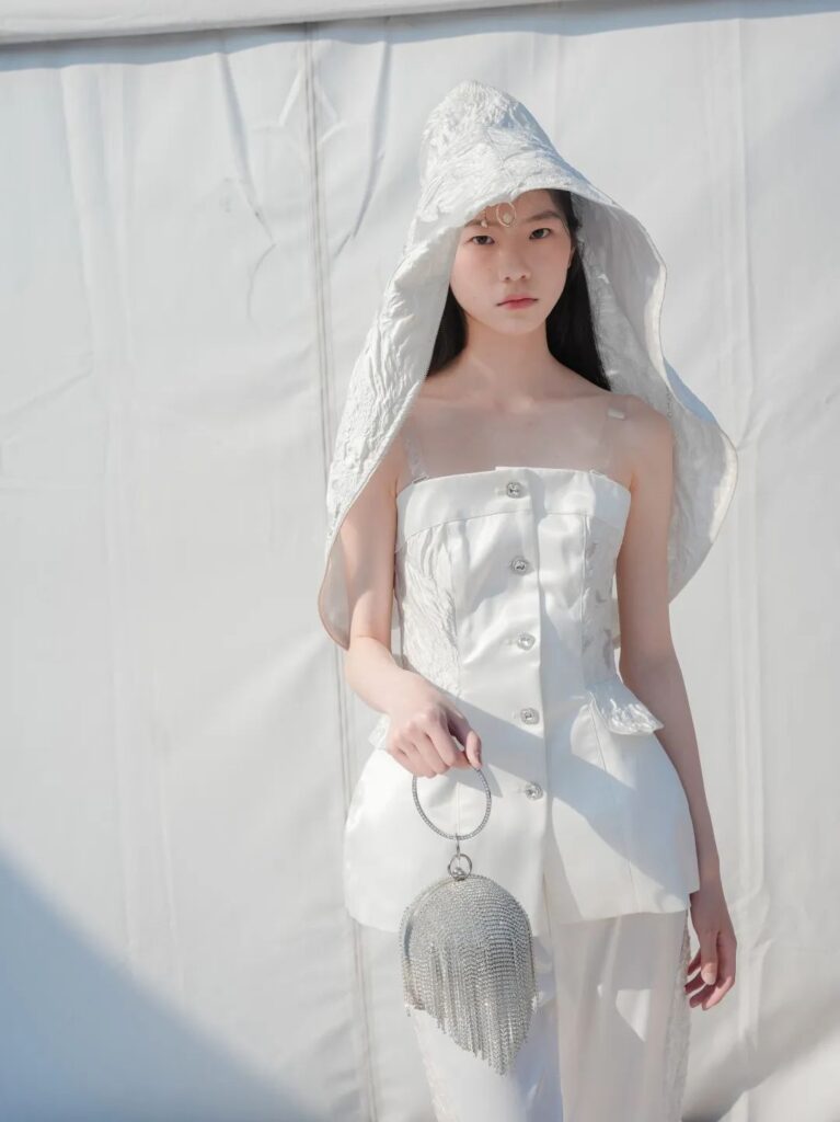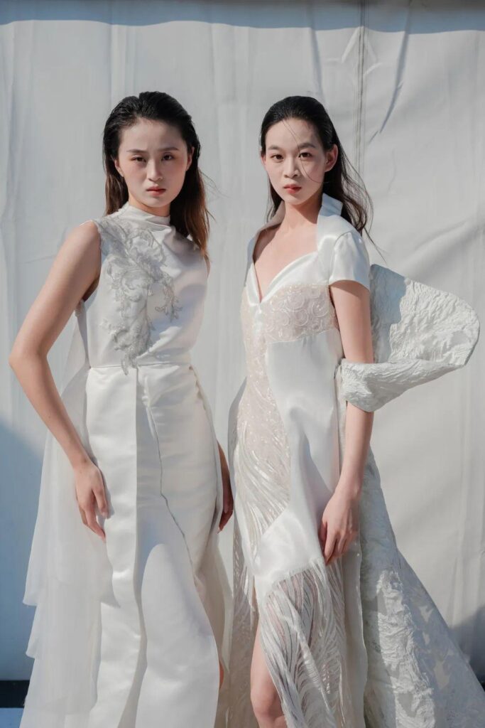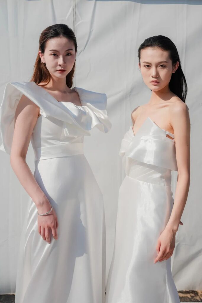 本季主题为“笙·花记”,意为“生命的乐章,花开的记忆”。系列作品致力融合中国传统元素、浪漫主义色彩和结构创新。设计中结合现代剪裁手法,巧妙融入传统服饰的精髓,呈现古典与现代的完美交融。柔美的色彩和流畅的线条,打造出带有东方韵律的唯美礼服。