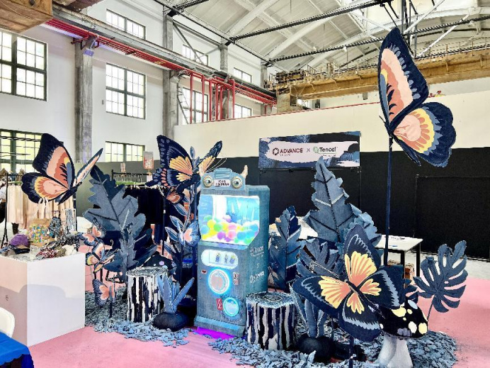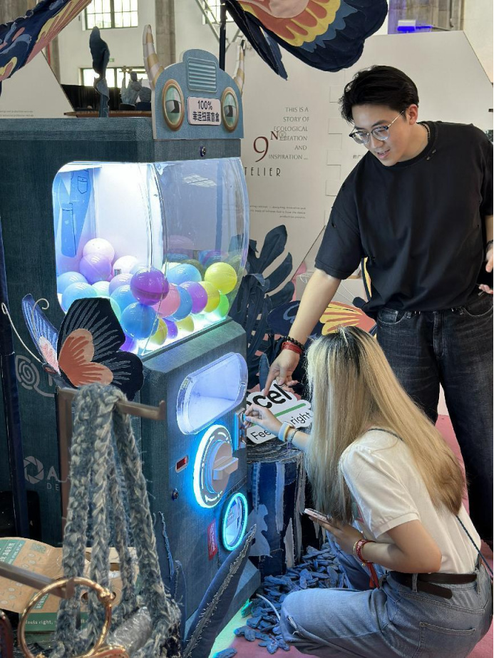 现场设置扭蛋机抽奖活动,消费者可以领取到由牛仔制作的钥匙扣、牛仔花、杯垫、笔记本、服饰等精美礼品,还有前进牛仔×Tencel™×USEDEN三方联名的包包,该活动吸引了许多牛仔爱好者们积极参与,现场整体氛围热烈而欢快!