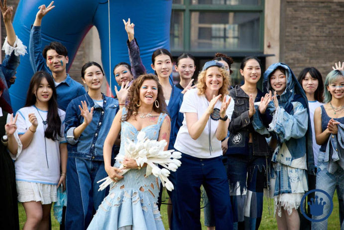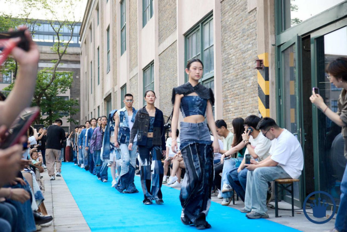 在本次Kingpins杭州展上,还有值得关注的亮点是HKDI香港知专设计学院的学生们的作品展示,以及联合中国美术学院、江南大学共同呈现的走秀活动。他们巧妙地将前进牛仔的可再次回收面料赋予了新的生命,精心创作出”再生牛仔系列”,并在展会的公共区域绽放异彩。