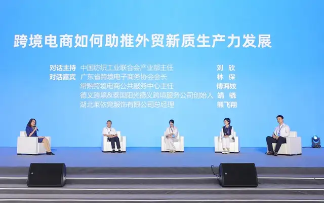 中国纺织工业联合会产业部主任刘欣与广东省跨境电子商务协会会长林保、常熟跨境电商公共服务中心主任傅海姣、德义跨境&泰国阳光德义跨境服务公司创始人靖骁、湖北莱依窕服饰有限公司总经理熊飞翔就《跨境电商如何助推外贸新质生产力发展》展开深入探讨。大家纷纷认为,近年来跨境电商不但规模成长快,更重要的是创新迭代速度也是不断加快,所以要关注当前所面临的国际贸易环境,充分分析供应链竞争格局等诸多影响因素,练好自身内功,做好跨境电商这一外贸新质生产力。
