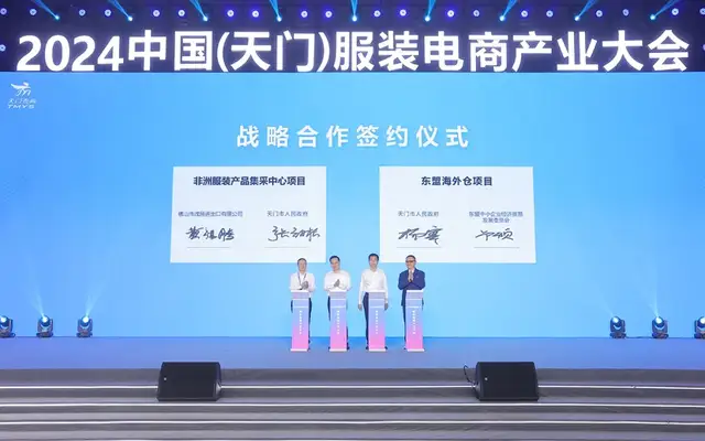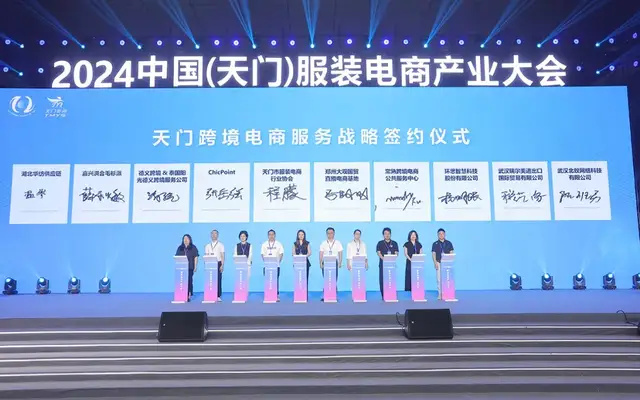 同时,天门市服装电商行业协会和相关跨境电商平台及服务商,共同签署了天门跨境电商服务战略合作协议,赋能天门服装电商产业高质量发展。