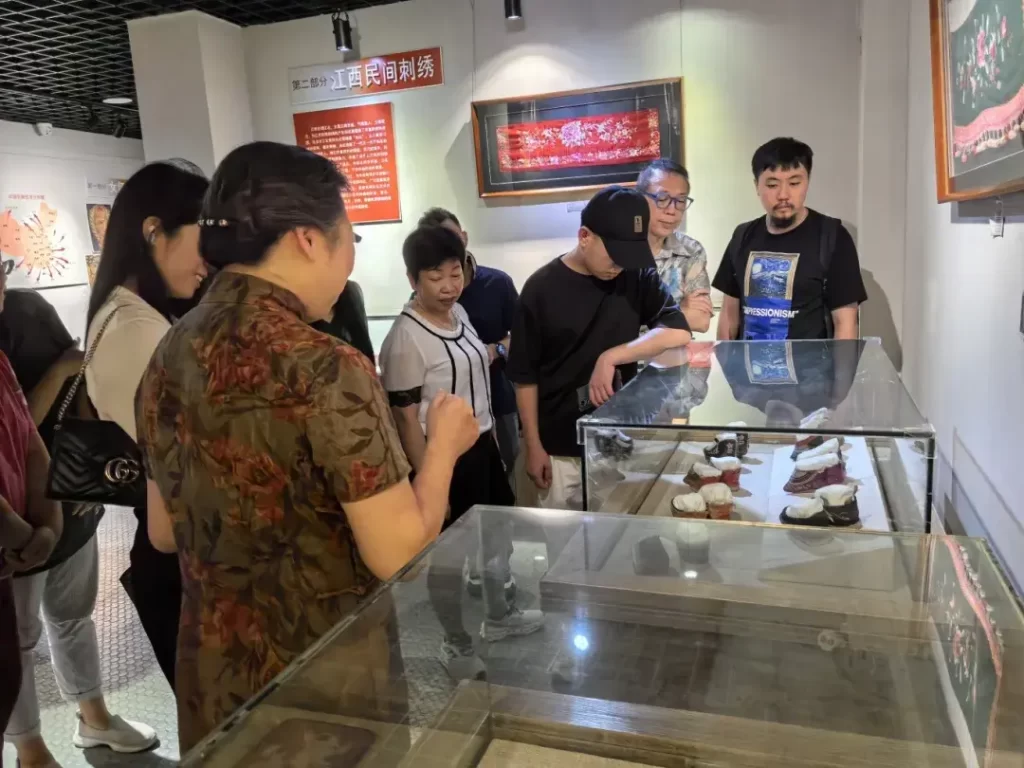 夏布绣是以其绣地材质——“夏布”命名的绣种,是孕育和成长于新余的传统民间绣活,在江西流传已有千年。夏布绣是夏布艺术和刺绣艺术融合的手工艺,夏布自然的肌理上以针代笔,以线为墨,绣绘了水墨丹青的神韵,使夏布绣呈现出特有的古拙之美。2014年,夏布绣被列入国家级非物质文化遗产代表性项目保护名录,是江西独有的特色绣种。新余夏布博物馆通过丰富的历史资料和实物展示,为香港游客详细讲解了夏布绣的发展历程。香港游客们可以在这里看到早期夏布绣的作品,了解其在历史长河中的演变和发展。
