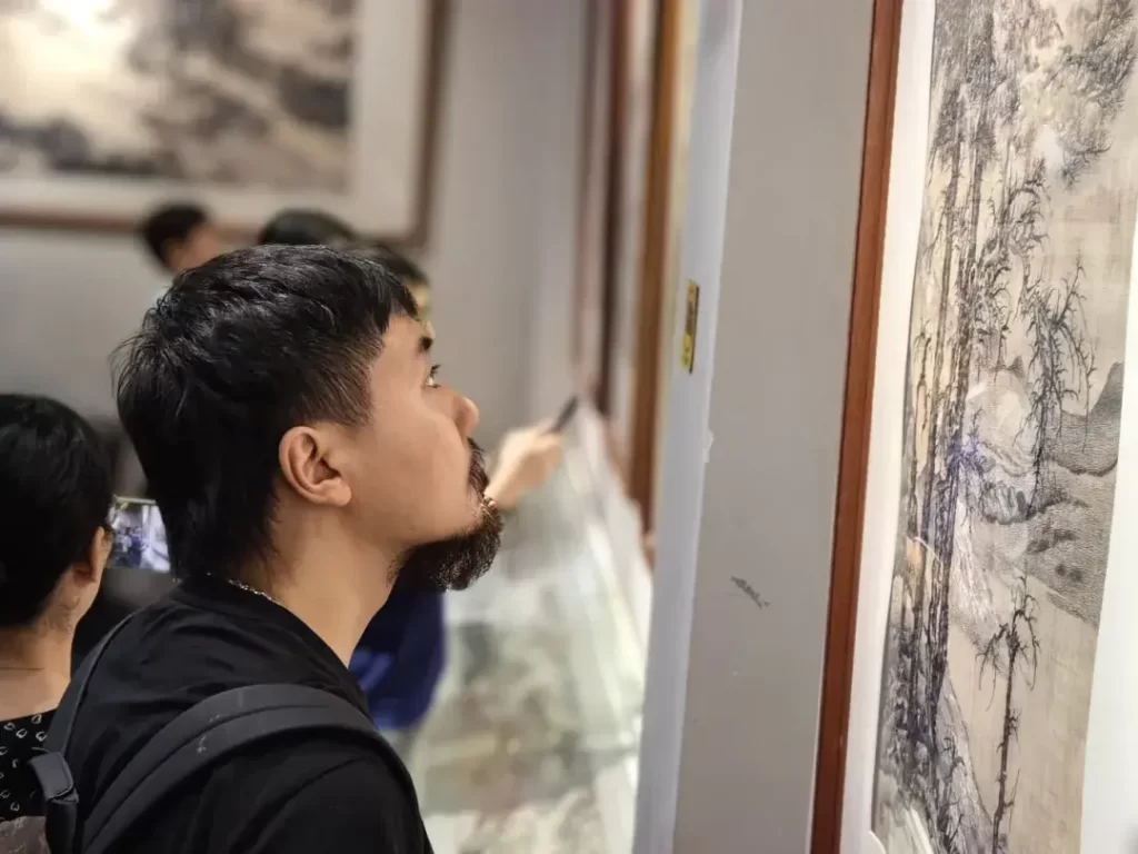 进入展馆大厅,游客们被琳琅满目的夏布绣艺术精品所吸引。这些展品不仅展示了夏布绣的创新针法的运用和夏布绣的古朴典雅的,还融入了现代设计元素,使之更加符合当代审美。游客们欣赏到了各种类型的夏布绣文创品,从日常生活用品到艺术装饰品,每一件作品都展示了工匠们的智慧和巧手。