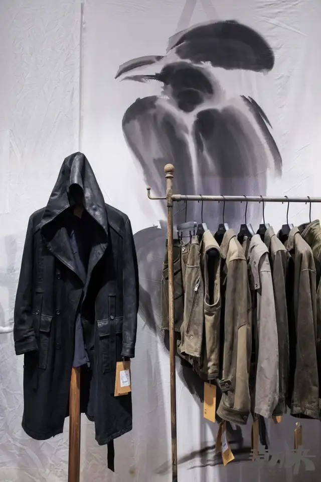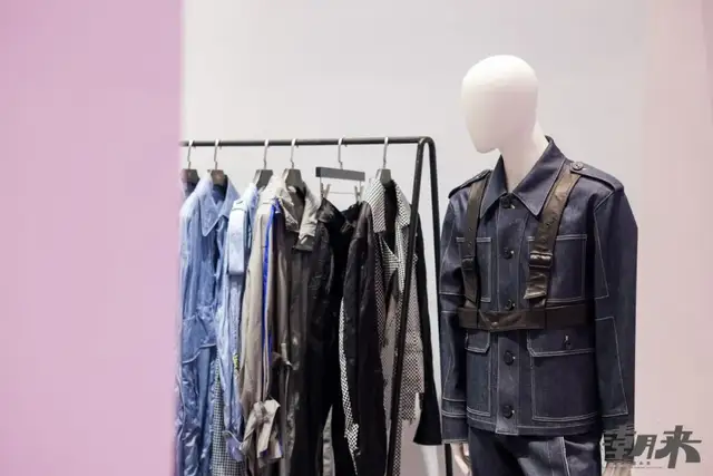 值得关注的是,本次展会还首次设置了品质男装区,男装品牌NG带来皮衣、风衣、西装、衬衫等多品类,毛边设计、下摆设计日常实穿,铆钉、刺绣、钉珠、扎染等设计款,时尚酷炫。男装品牌“原本无尘”选择在海宁时装展的平台首次亮相,无疑是对展会的高度认可。品牌“出道战”主打皮衣“时装化”,衬衣、马甲、裤子、包包品类全线出击,皮拼亚麻、皮拼老帆布等手法令人眼前一亮。负责人王龙军表示:“近年来,海宁全品类时装发展迅速,作为原创设计师品牌,我们抓住男装品类的赛道,借助海宁时装展这一专业的服装类展会,“原本无尘”品牌有望能更快更好的进行品牌塑造,同时通过展会,也为我们提供了宝贵的市场检验机会。”