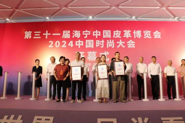 2024年7月11日,“海宁皮革”浙江区域名牌授牌仪式在第三十一届海宁中国皮革博览会开幕式上隆重举行。海宁市金霏皮革时装有限公司、浙江托宝服饰有限公司和嘉兴霓彩服饰有限公司成为“海宁皮革”浙江区域名牌授权使用单位,浙江省皮革行业协会书记、执行理事长李伟娟为三家企业授牌。