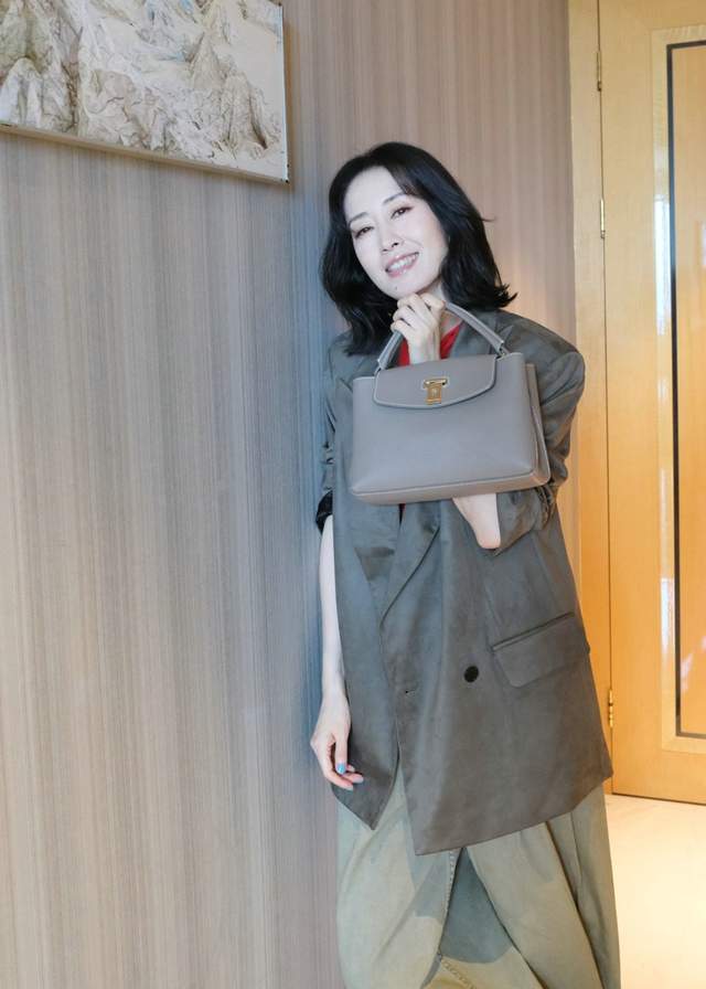 演员刘敏涛拿着 Bally 秋冬女士 Layka 复古棕皮革手袋,利落廓形契合干练气场,飒爽之余更显优雅风采。