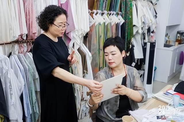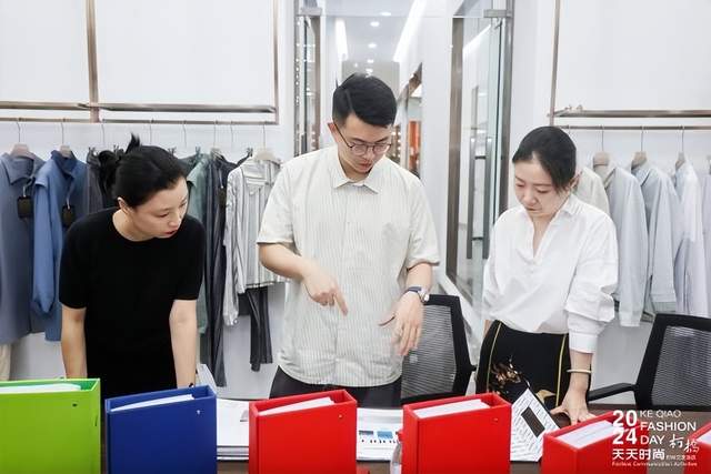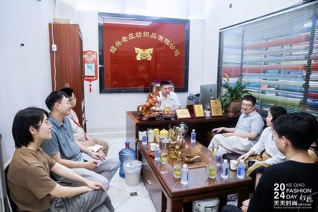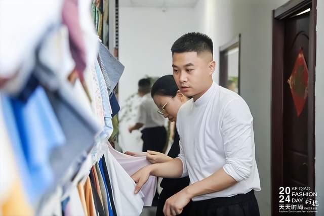 ZUYAO SONG品牌主理人宋祖耀的设计作品以差异化的新国风服饰为主,力求打造独特风格。绍兴市柯桥区暖羊羊科技文化有限公司创始人张亚主要设计面向亲子、宠物的多元化亲宠服饰产品。宋祖耀、张亚、陈星颖一同走访了嘉利隆纺织、格太珂斯轻纺、诗迈针纺、宝姿纺织等四家规模较大、实力较强、品控严格的柯桥面料企业。
