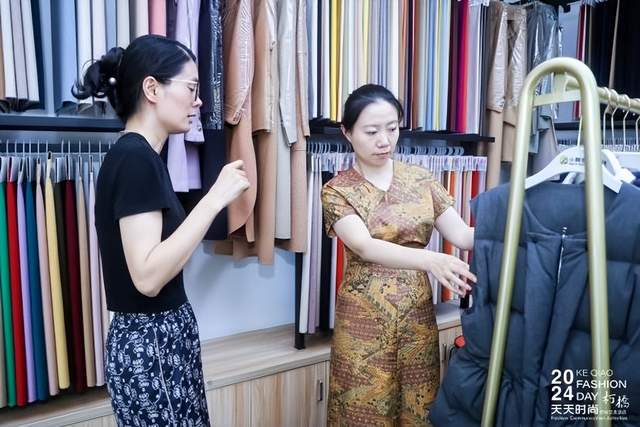 “蜀润纺织的丝毛混纺产品适合用于各类春秋季服饰,品质挺阔,有着浓重的新中式风格。”陈翠萍指出,柯桥的面料产品以前以基础款为主,现在已有相当数量的企业开始注重差异化产品开发。孙瑶表示,大树与她已有多年的合作,大树的面料配色丰富,品质、档次较高;她希望进一步了解哈文商务咨询的花型设计服务,持续探索双方合作的新模式。赵天天指出,“才高绣品的供货模式能够满足我的设计需求,会考虑与其在线上线下同时开展合作”。她表示,柯桥的部分优秀面料企业正在向中高端转型,天然纤维产品的比重正在增加。
