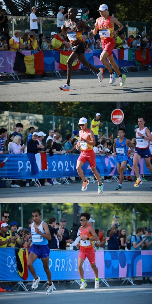前5公里15分44秒,10公里31分05秒,领跑的梯队多达50余人,比赛的进程随着赛道起伏而千变万化。杨绍辉与何杰冲在队伍前面,吴向东采用跟随跑保持节奏,中国选手用各自的方式展现着自己的实力。
