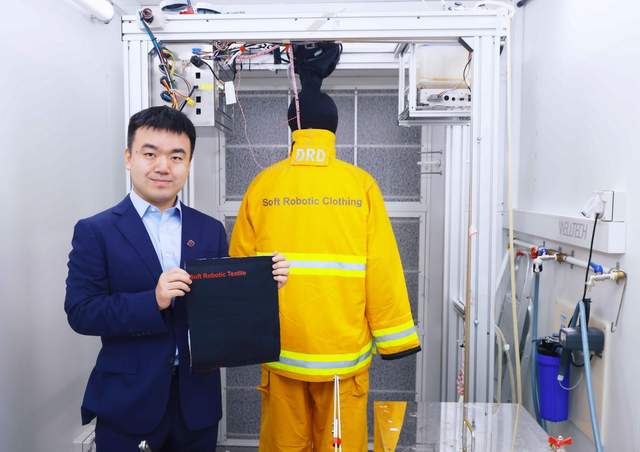 热防护衣是保护极端高温下工作人士的重要装备,尤其是需要身处火災现场的消防员和长期在户外工作的建築工人。然而,传统防护衣的热阻固定不变,在常温环境下穿着容易因过热造成不适;若用于火災现场和极端高温环境,其隔热效能又未必足够。为此,寿大华博士及其研究团队研发了一款智能软体机器人防护衣,可以根据用家身处的环境温度自动调节隔热效能,在不同温度下提供卓越的热防护和热舒适度。
