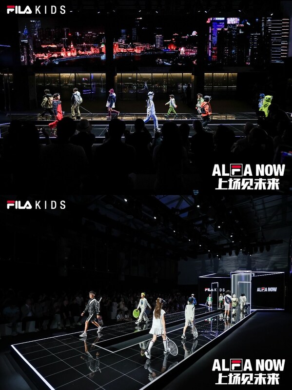 与此同时, ALFA GALA时尚大秀上,FILA KIDS全面展示了秋冬新品,引领儿童运动时尚的新潮流。通过高级运动、高街潮童、户外滑雪3大场景,展示多样运动时尚新品,让ALFA小孩在不同的生活及运动场景中都能选择到最佳装备,展现自我风采。伴随着外滩标志性都市夜景开场的高级运动系列,是凝聚FILA百年运动精髓的网球和高尔夫球系列。运动美学与经典剪裁交融,专业球员模特的加持,将专业性和高级感演绎的格外利落干净。以专业带动专业,让美学融入赛场,该系列的开场LOOK完美展示了FILA KIDS深耕运动品牌行业,在专业领域更上一层楼的决心与实力。而随后的高街潮童场景展示了ORIGINALE系列的潮酷时尚和BIELLA系列的优雅轻奢,让天马行空的创想与前卫设计碰撞的结果,产生了独具一格的化学反应。最后部分的户外滑雪系列,结合时下最新运动风潮,诚意满满的呈现了从未来感废土风的都市户外套装,到满载GOR-typo科技防护的BBC跨界联名冲锋衣,到最新的四方联名的单双版专业雪服。这个冬季,无论是山野户外还是雪山远行,每个享受自然的小朋友都可以在FILA KIDS感受从头到脚的专业防护及时尚体验。