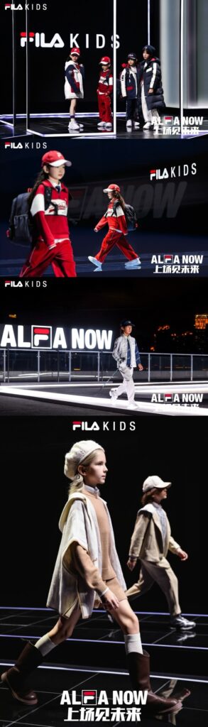 FILA KIDS敏锐洞察GEN ALPHA的特质,以“ALFA”代表那些拥有天赋、态度、创造力和先锋精神的孩子们,深化新世代潮童个性化自我表达。此次“ALFA NOW 上场见未来”主题大秀深刻诠释与GEN ALPHA共同塑造的A世代理念。FILA KIDS 秀前释出的品牌campaign中,梅耶•马斯克倾情献声,述说GEN ALPHA的无限潜力,通过网球、滑雪、高尔夫、街舞和滑板五大ALFA小孩的运动故事,刻画属于FILA KIDS所代表的新一代ALFA小孩“生而自由、热爱无畏、多元先锋、创造无限”的品牌理念。