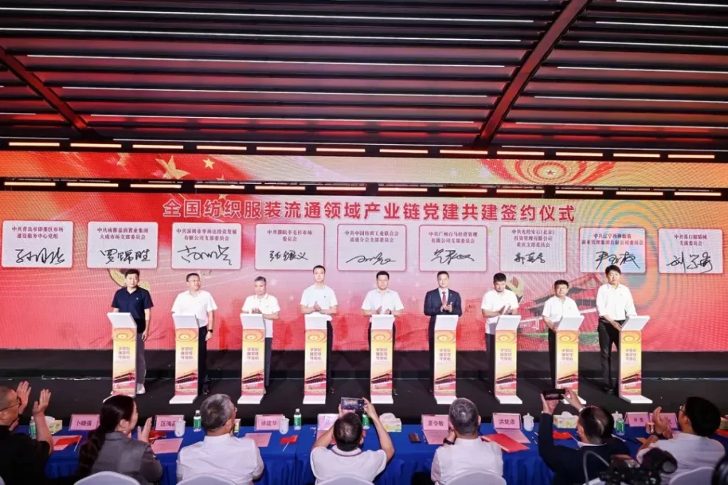 中国纺联流通分会副会长兼秘书长王水元与八支参赛队领队签署了全国纺织服装流通领域产业链党建共建战略合作协议。未来将进一步加强纺织服装产业链党的建设,发挥党建引领作用,贯彻落实构建全国统一大市场的战略决策,积极构建“资源共享、优势互补、相互促进、共同提升”的工作新局面,进一步助力纺织服装流通领域产业链高质量发展,加快建设高效规范、公平竞争、充分开放的全国统一大市场,为以中国式现代化全面推进强国建设、民族复兴伟业提供有力支撑。