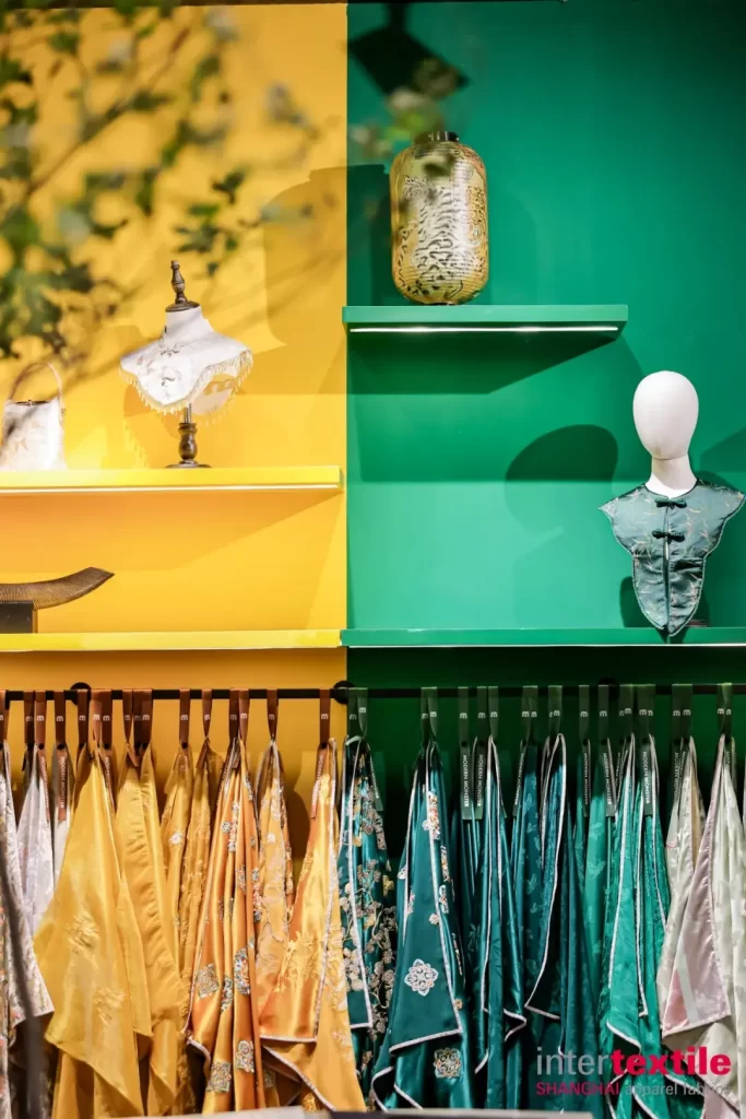 江苏华佳丝绸股份有限公司则唱响绿色发展主旋律,此次展会展示了可循环真丝、抗皱真丝、真丝交织面料新品,可循环真丝其生产过程更注重生态平衡和资源循环利用,减少了对环境的影响。