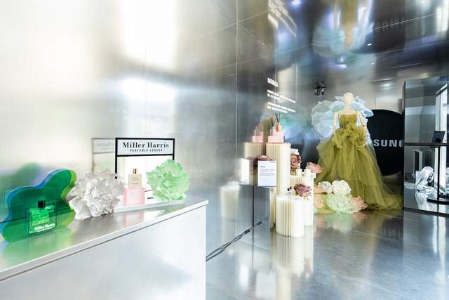 在【绿影藏幽梦】区域,三星BESPOKE缤色铂格系列的洗烘产品被绿意盎然的植物环绕,展现了其利用AI洗涤、AI泡泡净、AI烘干和AI智控等技术,不仅提升了衣物洗护的智能化水平,还助力节能减排,减少对环境的影响。在【话隙品佳肴】区域,三星携手艺术家廖曼实现了一次艺术与生活的精彩碰撞,其为三星冰箱和展区中的厨房墙面创作的彩绘,为家居环境增添了一抹艺术气息,展现了艺术与生活的融合。在【幽荷香自远】区,三星与香氛品牌米勒·海莉诗联合,其独有的文艺香气弥漫在空间中,与三星AI神衣物护理机的香氛盒装置相呼应,充分体现香氛艺术与科技的邂逅。
