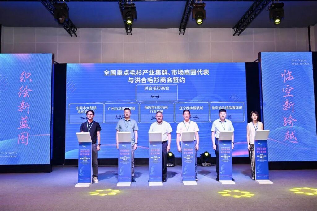 洪合毛衫商会与东莞市大朗镇毛纺织行业协会、广州白马服装市场、海阳市针织毛衫行业协会、辽宁西柳服装城、重庆渝派精品服饰城等国内重点毛衫产业协会及专业市场签署战略合作协议,为毛衫时尚产业进一步发展打造优质供应链生态系统。
