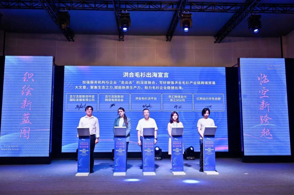 活动现场,洪合“毛衫派”还联合吉尔吉斯斯坦中亚国际发展有限公司、吉尔吉斯斯坦跨境电商协会、寻汇跨境支付浙江分公司、亿邦动力华东总部共同发布《洪合毛衫出海宣言》,聚焦“一带一路”,助力洪合本土毛衫企业打通出海通道,坚定企业“走出去”“拓市场”的信心与决心,让更多优质产品走向国际市场。