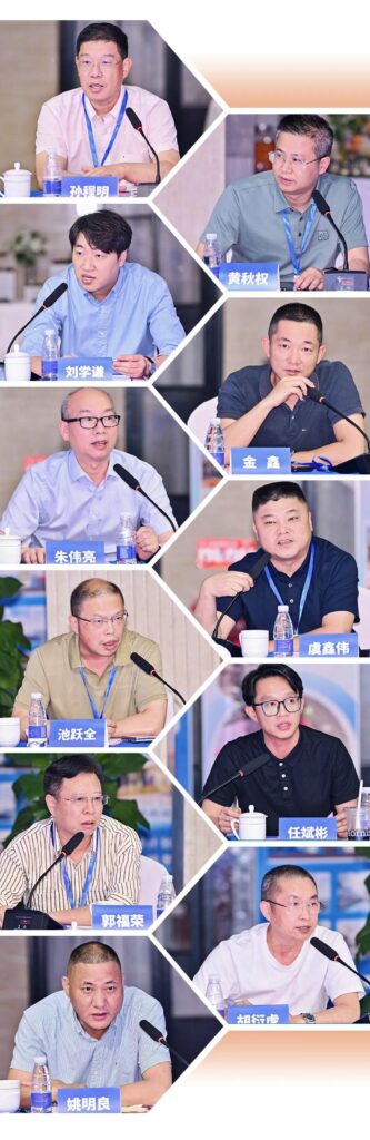 会上,为了进一步交流经验,汇聚更多创新力量,共推产业高质量发展,海阳市针织毛衫行业协会会长孙程明、广州白马服装市场党支部书记黄秋权、济南泺口服装城总经理刘学谦、重庆朝天门大融汇服装市场副总经理金鑫、常青女装城常务副总经理朱伟亮、义乌篁园服装市场总经理虞鑫伟、重庆圣名商业广场副总经理池跃全、东莞市大朗镇毛纺织行业管理委员会党支部书记任斌彬、杭州意法服饰城副总裁郭福荣、陋室铭商业管理咨询有限公司总经理胡衍虎、洪合毛衫商会会长姚明良分别结合市场发展情况,就当前市场集群在管理、服务等方面的创新举措;嘉兴市临空经济示范区下洪合毛衫产业跃升新路径,以及未来毛衫产业如何不断培育壮大新质生产力,积聚新动能等热点话题进行了分享和交流。