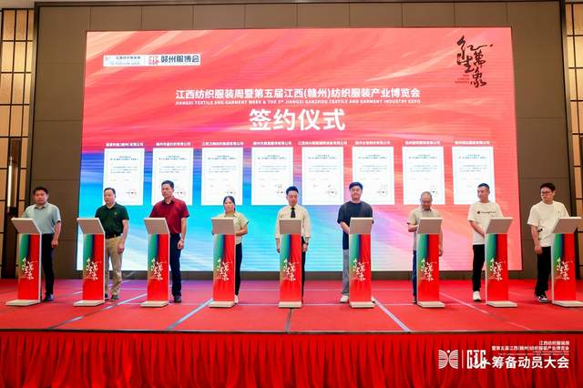 筹备会上,赢家时装(赣州)有限公司、赣州华鑫针织有限公司、江西卫棉纺织集团有限公司、赣州市鼎晟服饰有限公司、江西祥兴智能缝制设备有限公司、赣州合信制衣有限公司、赣州捷荣服饰有限公司、赣州润达服装有限公司、江西仔衣库服饰有限公司、江西脉动智能制造时尚产业发展有限公司、于都县阳煇毛衣有限公司、中纺标(江西)检测有限公司、赣州银鸽纺织有限公司、江西帛彩纺织科技有限公司、赣州夏威机械设备有限公司、赣州捷出服饰有限公司等16家会员企业签订了意向参展协议。