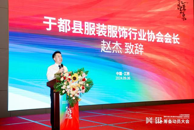 于都县委常委、副县长杨海峰,于都县服装服饰行业协会会长赵杰,深圳市地球村展览有限公司、赣州市地球村展览有限公司总经理杨文龙,于都县各职能单位、协会会员单位代表等100余人参加了筹备大会。