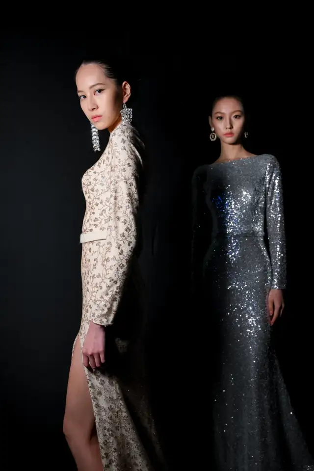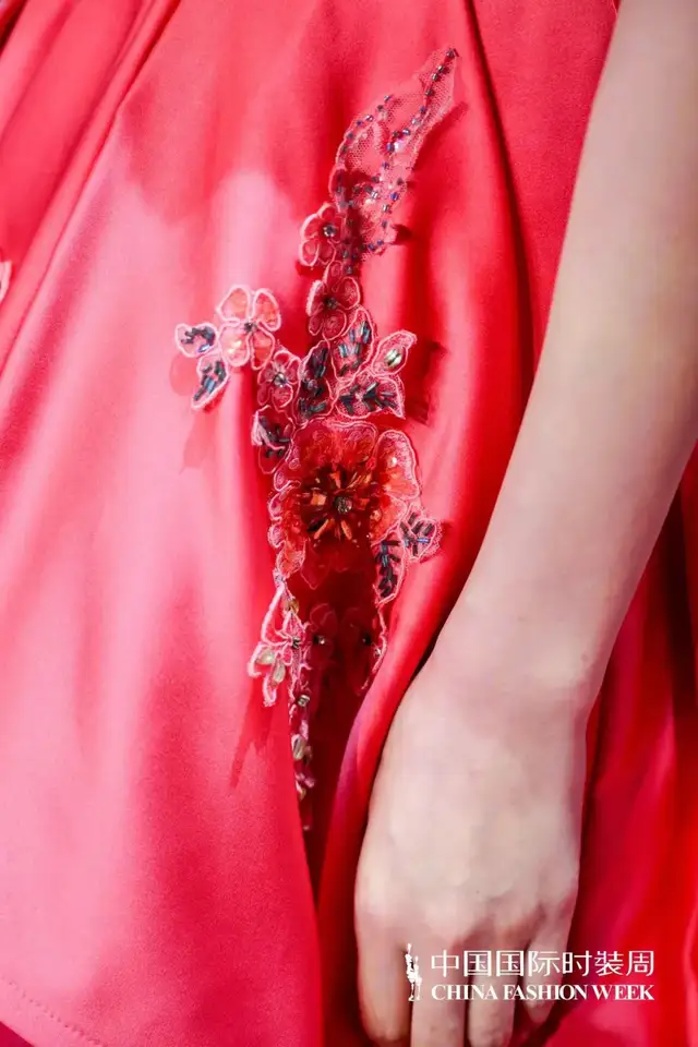 她将中国传统特色服饰旗袍和西式礼服作为设计研究对象,在东西方文化碰撞下进行创新设计,不仅展示了高定服装独特的设计和优雅的风韵,也展示了苗绣、潮绣手艺人传统服饰制作的精湛技艺。