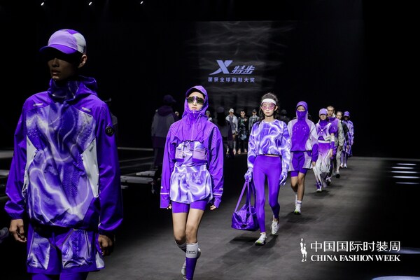 以未来科技运动为核心,特步2025春夏系列主色调为光感紫和夕岚红,42套look独树一帜,大放异彩,突破时尚运动穿搭界限。深邃又神秘的奥运紫,穿插金属无彩色系,打造先锋未来感,视觉体验十足。