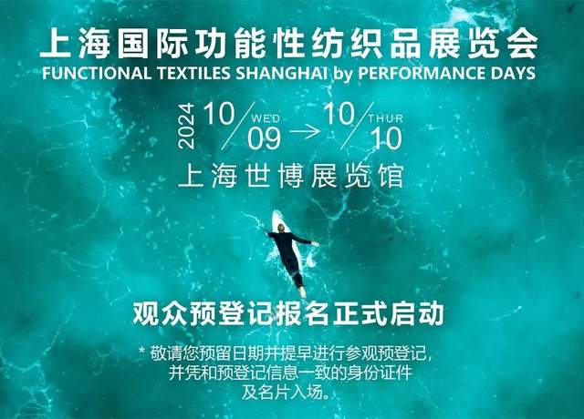 10月9-10日,上海世博展览馆H4,FUNCTIONAL TEXTILES SHANGHAI by PERFORMANCE DAYS上海国际功能性纺织品展览会秋冬展,我们已为您准备好优质解决方案,8个主题功能区,9大特色亮点,200+家国内外创新企业,数千款创新产品。