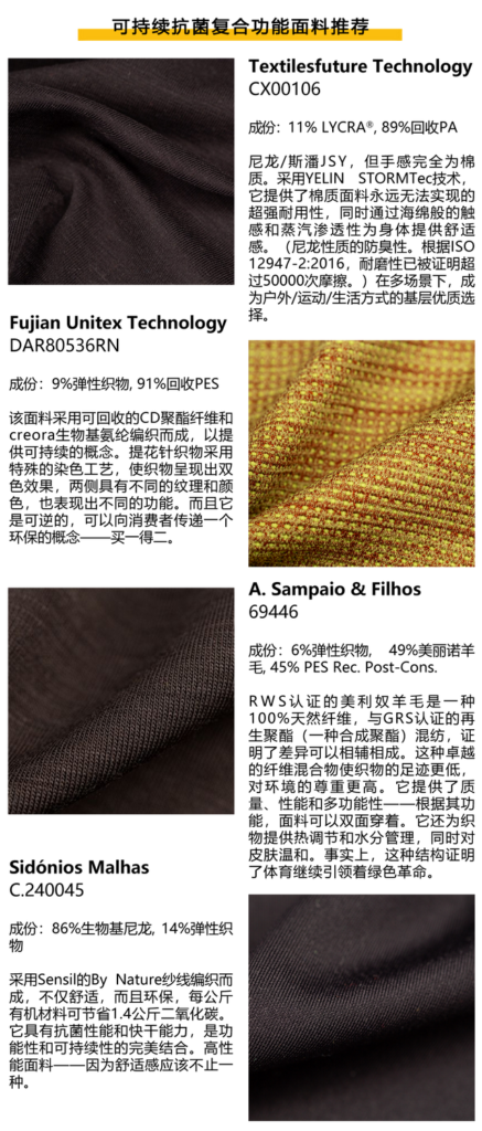 AWARDS将集中展示来自展商选送,经由不同领域专家组成的评审团严格评选入围的优秀可持续环保面料和创新功能性面料,高效满足供需对接,为下一季产品开发提供思路指引。