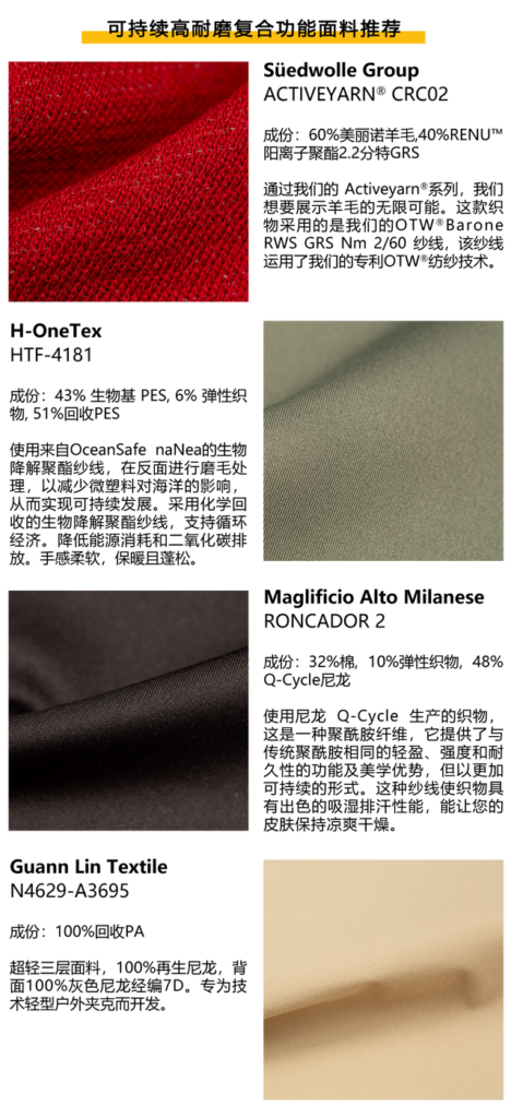 Polartec、Taiwan Axroma、Ocean Plastic、Super Textile