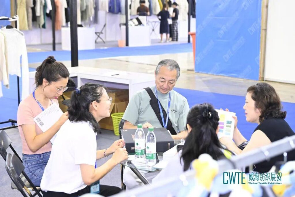 【CWTE威海纺织展】荟萃各地精品,备受行业瞩目。不论是一线品牌还是原材料源头厂家都纷纷将目光瞄准本次展会。现场客商、各地参观团纷拥而至,采供洽谈热闹非凡,迎来展会供需交易的高光时刻。