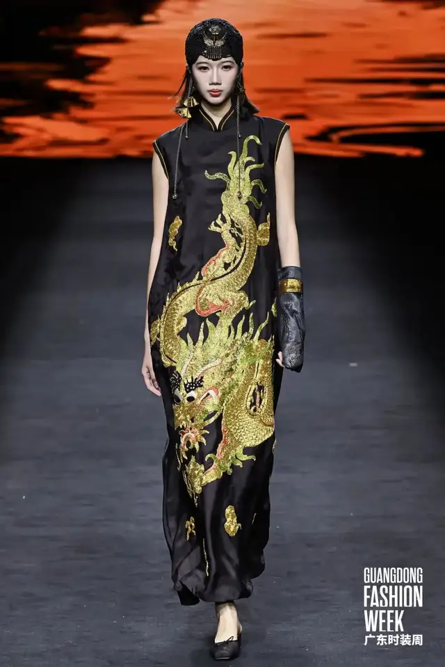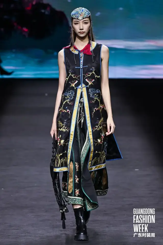 对于新一代的服装人、时尚设计师、纺织非遗文化传播者而言,源,既是灵魂、根源、基因所在,也是对历史源流、脉络的赓续传承。而源创,则意味着首先要更深入地去挖掘、溯源,进而守正创新,在传承非遗文化、技艺与面料等的同时,加入更多鲜明的时代潮流元素,并以现代的时尚手法进行重新演绎,既与传统共生,又与时代共鸣,让非遗瑰宝背后承载的人文精神感染与振奋更多人。发布会现场,新一届广东纺织服装非遗推广大使以创新的设计和独特的视角,将时尚与中华优秀传统文化相融合,对粤绣(广绣)、粤绣(潮绣)、粤绣(珠绣)、香云纱染整技艺、香云纱(坯纱)织造技艺等非遗项目进行创新组合,用时尚赋能非遗,以非遗点亮时尚,向现场观众展示了一批文化内涵与市场价值兼备的岭南新衣佳作。