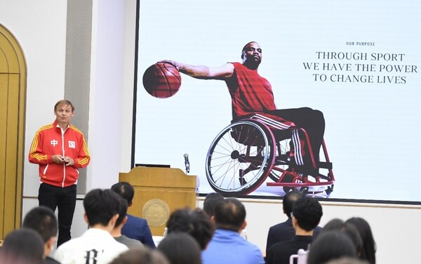古尔登还受邀做客”清华海外名师讲堂”第247讲,为年轻学子们带来一场以”You Got This你行的”为主题的精彩演讲。演讲中,他分享了阿迪达斯对未来运动科技创新、体育产业发展趋势的洞察与思考,从体育初心、运动科技、文化传播等不同角度,为莘莘学子描绘出产业未来发展蓝图。在随后的交流互动环节,到场师生就足球训练与体育精神等话题与古尔登交流,古尔登逐一进行解答。