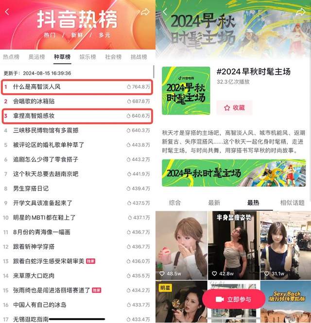 在造风内容的引领下,截至 9 月 29 日,#2024 早秋时髦主场、#什么是高智淡人风 、#越旧越潮的返潮复古穿搭等话题累计曝光播放量破 73.5 亿,趋势引发用户自发关注及讨论,并在站外成功出圈,收获多平台超高声量。