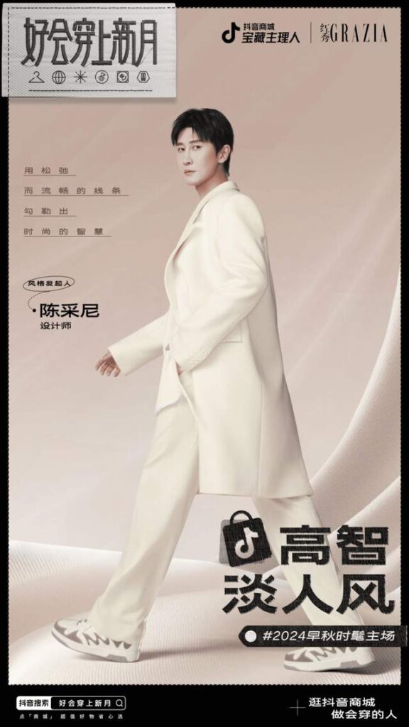 活动中,Melinda Li 品牌主理人-梦颖、ANGEL CHEN 主理人-陈安琪、素白主理人-马乖、SANBAI STUDIO 主理人-叁佰、TIWILLTANG 启示录主理人-唐一、Lookun 主理人-宋松、㯥囍 CAOXI 主理人-沙里宾、HEBREL 市场总监-黄贯婷等众多品牌主理人、品牌代表出席参与,刘令姿、刘也、林超泽、肖恩雅、陈如意、周梓倩等明星嘉宾纷纷莅临大秀。抖音商城旨在携手诸多主理人品牌、明星打造秋日时装大事件,为行业带来更多生意机会。
