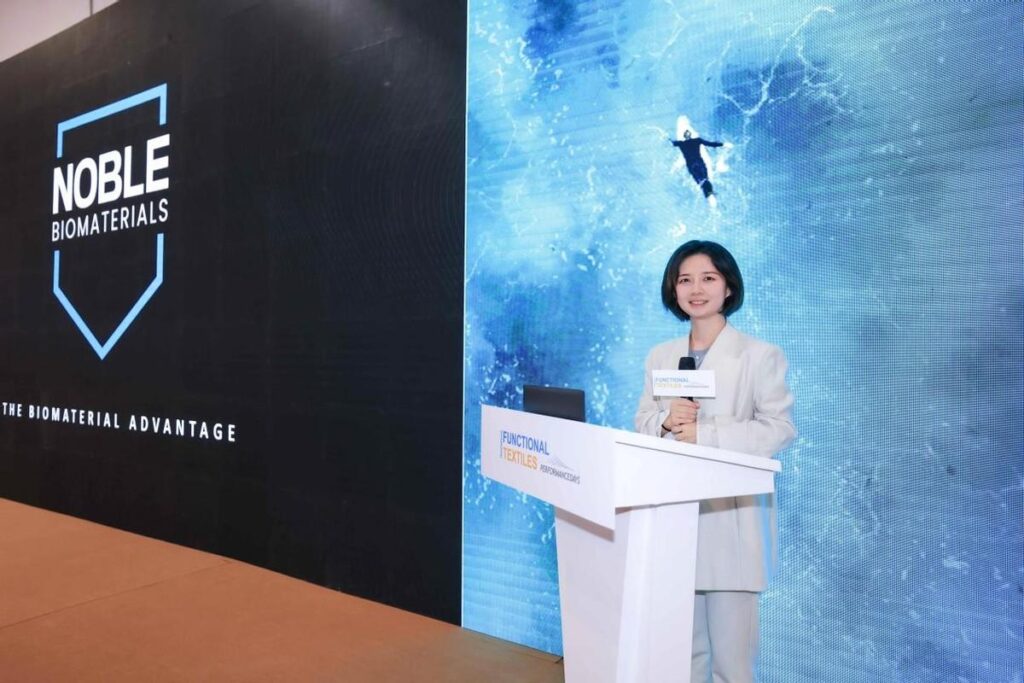 诺博在展会广受与会者的青睐和垂询,并受主办方邀请于展会首日在Workshop技术发布环节发表主题演讲。诺博的大中华区业务总监薛丹女士发表了《Ionic+奥宁科以快反创新响应全球市场的不同需求》的主题演讲,“诺博致力于提供更方便、更快速的创新。当我们引入Ionic+® Botanical植物抗菌织物解决方案时,需要做好市场准备,以便客户能够快速应用。这意味着我们新的以植物基柠檬酸为基础的配方需要在美国环保署EPA注册,这样客户就可以在全球范围内宣称其抗菌并抑制其所产生的异味。Ionic+®的核心要素之一是符合全球注册和认证要求。”