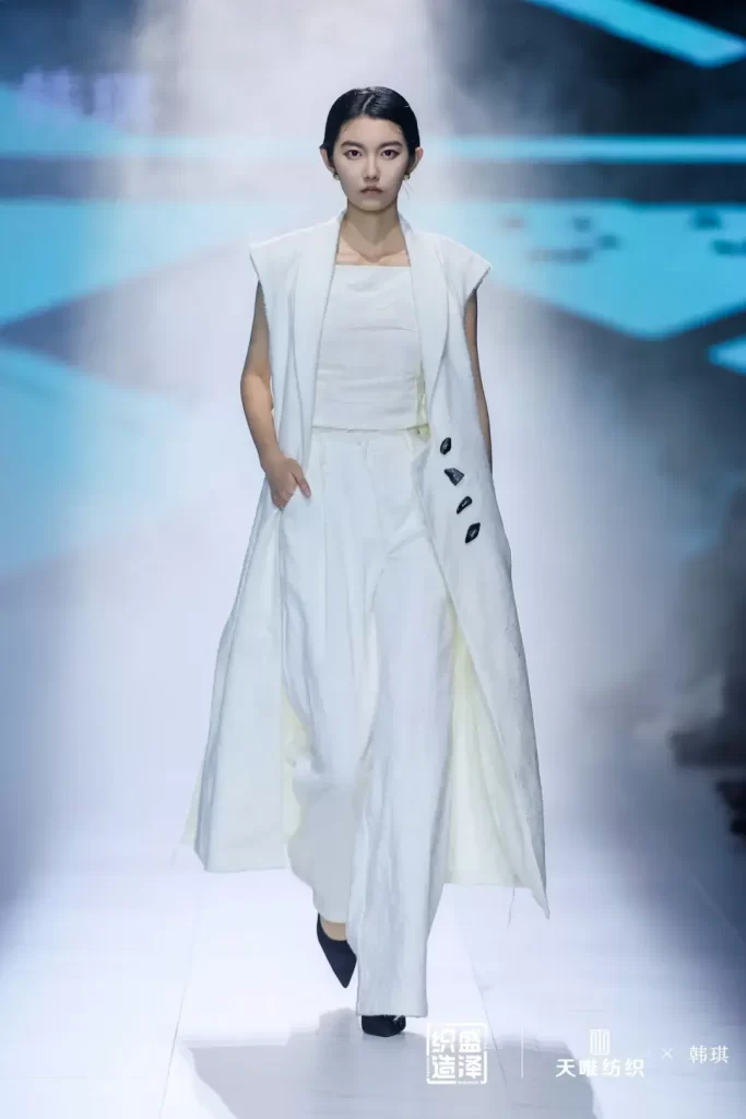 该款面料适用于男女衬衫、外套、裤装及裙装等多个领域。
