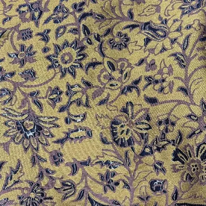 涤棉高光亮丝成分,花卉重组,大地黄与葡萄紫两种底色,同时加入了高光亮丝材质,使其增添时尚感的同时更显品质。