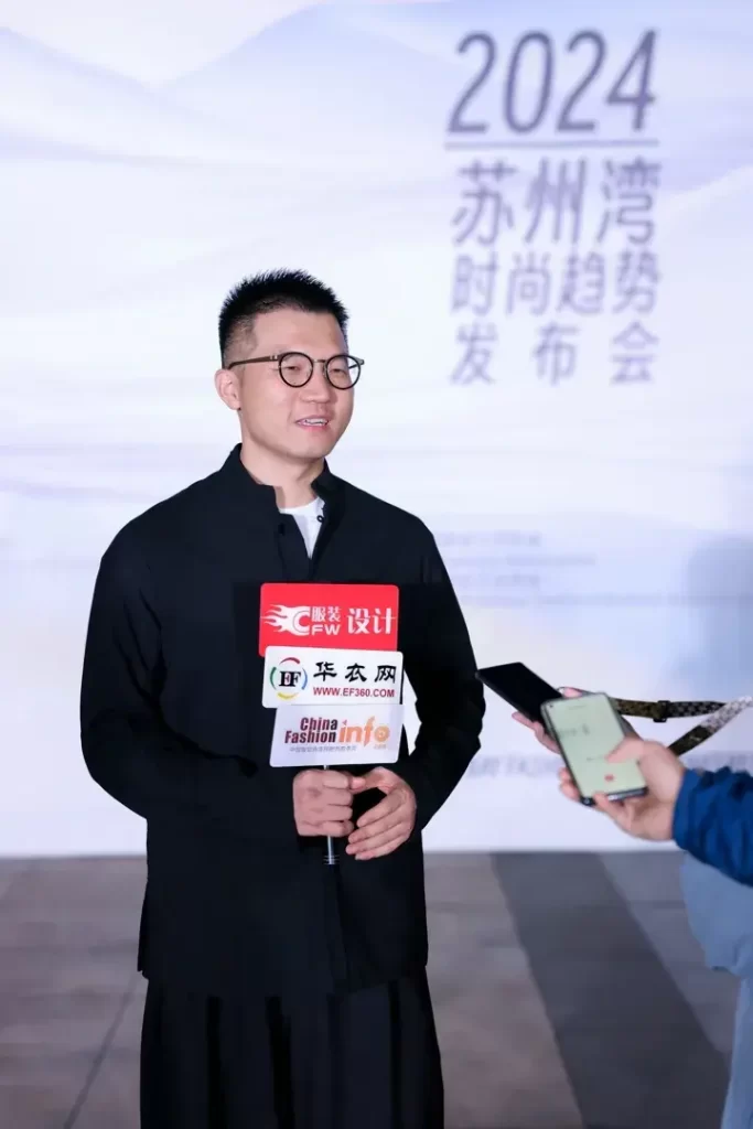 秀后采访中,龙泉禧里品牌创始人黄秋停讲述了绸都盛泽的丝绸文化及其品牌化发展,描述了龙泉禧里品牌的含义及其设计理念,强调了品牌在中国传统文化中的传承和创新。他表示,本次苏州湾时尚趋势的发布也是龙泉禧里品牌重新出发的一个新开始。
