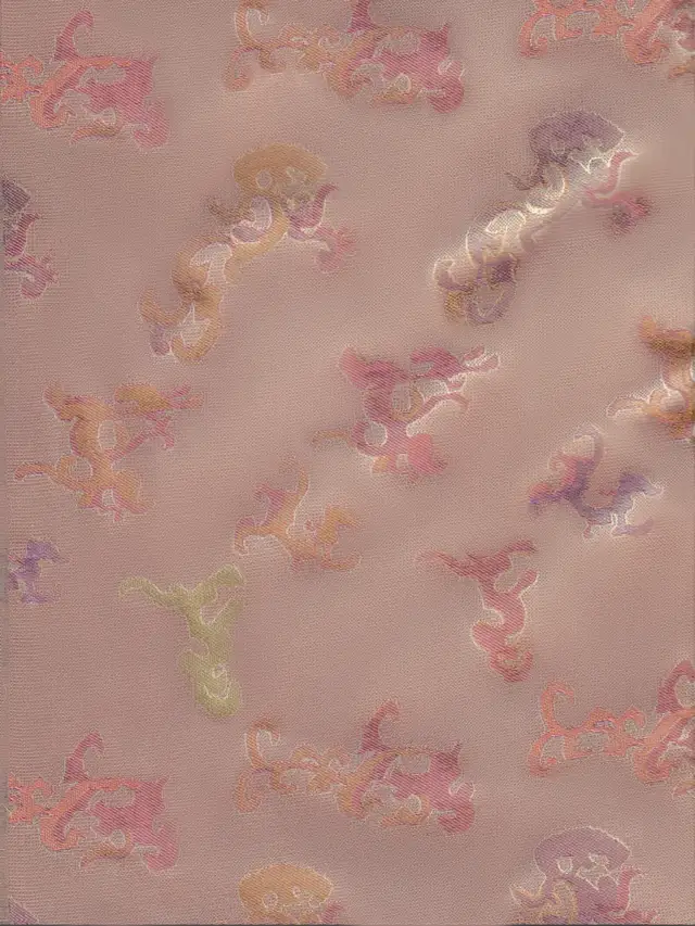 本次秀演面料主要围绕“非遗花罗”展开。花罗,又称吴罗,是织又花纹的质地稀疏的一种丝织品。花罗起源于战国时期的传统织造技术——四经绞罗技艺,是纯桑蚕丝织物,其独特的纹样、色彩和质地,使其被誉为“东方艺术瑰宝”。